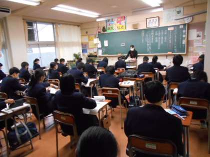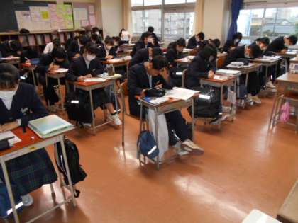 1年国語、2年国語、3年数学の授業の様子です。グループで話し合ったり、問題に取り組んだりしていました。