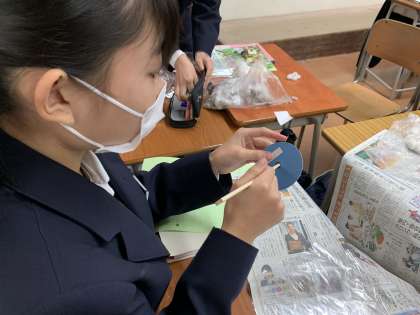 各家庭で植え育てた綿花を持ち寄り、今日は綿花を種と綿に分けました。かなり面倒な作業で苦戦している様子でした。来週は、綿を手作りスピンドルに巻いて、糸にする体験をする予定です。衣服ができるまでに長い道のりがあることを理解することができました。