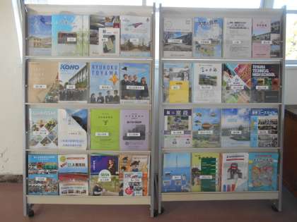 3年生のフロアには、高等学校等のパンフレットが並べられています。各校のカリキュラムや特色等を見ながら、進路選択の際に参考にしてもらえればと思います。