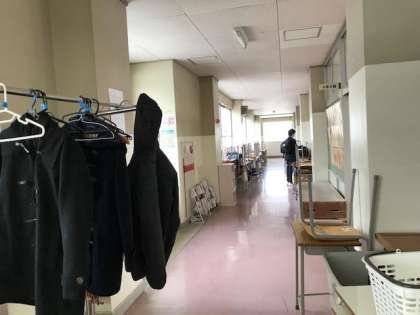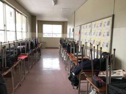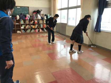 12月16日(水) 2年生ワックスがけ 1 公開日 2020/12/17 更新日 2020/12/17 2学年 長かった2学期も、残り1週間を切りました。 重点清掃週間の最終日に、ワックスがけをしました。 まず、教室内の物をすべて廊下に出します。 次に、環境委員が中心になって、教室にワックスを塗ります。(写真=1組)