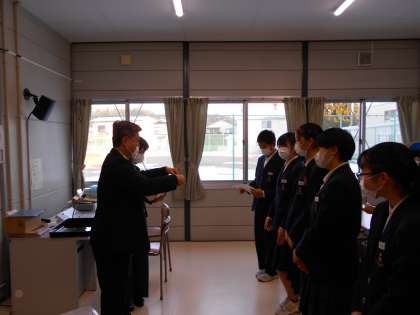 放送室での受賞伝達の様子です。