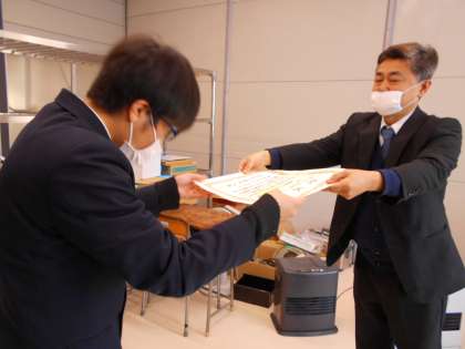 12月24日(木):受賞伝達 公開日 2020/12/24 更新日 2020/12/24 3学年 富山市消防局の防火ポスター、「高志の国文学」情景作品コンクール・文芸部門の受賞者を放送で紹介し、その後校長から賞状を授与しました。