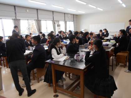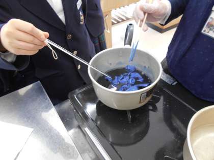 1年の理科の授業では、「音」に関する実験をしました。家庭科の授業では、マスク染めを体験しました。