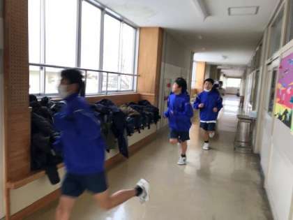 男子ソフトテニス部は、体育館でボールを打てる日を楽しみにしながら、走る!走る!