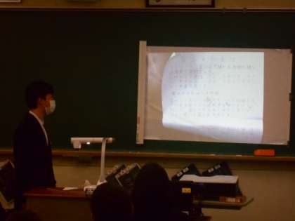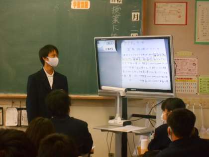 2月2日(火):第1学年 総合的な学習の時間 公開日 2021/02/02 更新日 2021/02/02 1学年 1年生は総合的な学習の時間に「富山のよさを知ろう」という課題のもと、調べ学習を行いました。聞き手に分かりやすく伝えるために、それぞれ工夫を凝らして発表しています。実際に現地を訪れ追究した生徒もいました。
