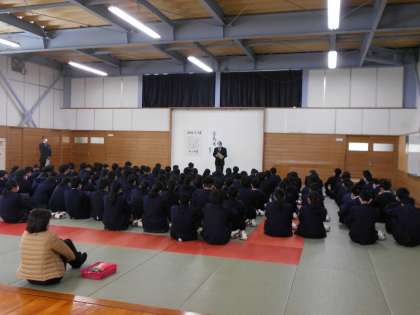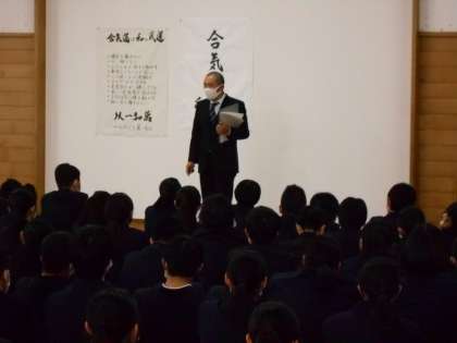 明日の私立高校一般入学試験に向けて、3年生は学年集会を実施しました。