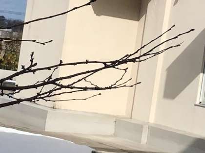 2月5日(金):春を見つけました。 公開日 2021/02/05 更新日 2021/02/05 2学年 中館2階の窓から、桜の木がよく見えます。 よく晴れた今日、桜の枝の先に、花のつぼみを見つけました。 …まだ、小さいですが。
