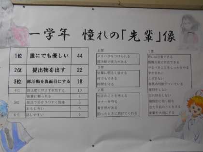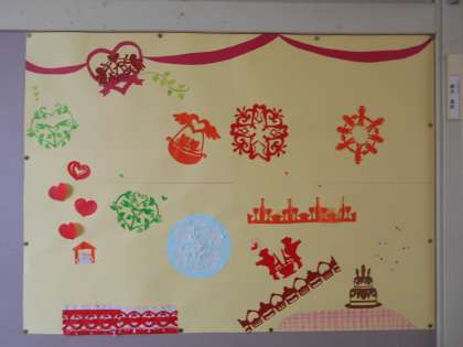 1学年の廊下には、目指す先輩像、ひかり級前には味わいのある切り絵が掲示してありました。