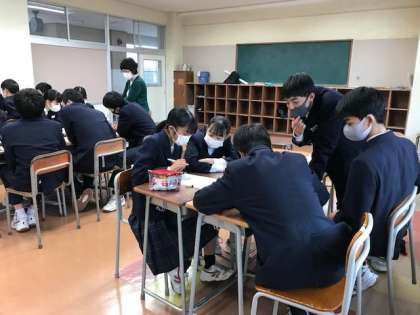 3月2日(火):第2学年 「理想の3年生になるために」4 公開日 2021/03/02 更新日 2021/03/02 2学年 学年生徒会拡大執行部が集まり、3月5日(金)の学級活動に向けて、クラス毎に準備をしました。各班で話し合った内容を基に、各クラスで取り組みたい課題を3〜5に整理しました。 明日は担任との打ち合わせです。 写真上=1月からの取り組み結果 写真中・下=各クラスの班長の話し合い