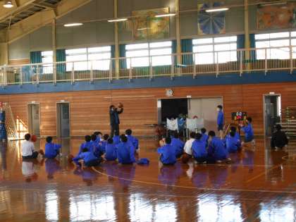 1年生の体育の授業の様子です。男子はバスケットボールをしています。