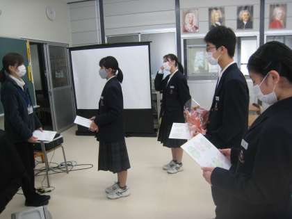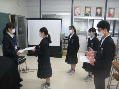 1年生が、英語や数学等の授業でサポートしてもらった感謝の気持ちを、色紙と言葉で表しました。