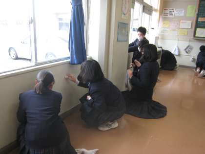 来年度壊される旧校舎ですが、「今までありがとう」という気持ちで、なおのこと、一生懸命磨いています。次の1年生が気持ちよく使ってほしいという気持ちも表れていました。