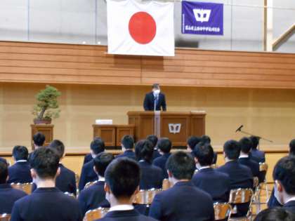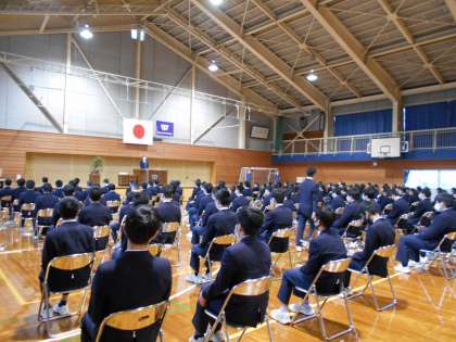 本日育成会記念品授与式が行われ、池田会長より卒業生133名に記念品が授与されました。