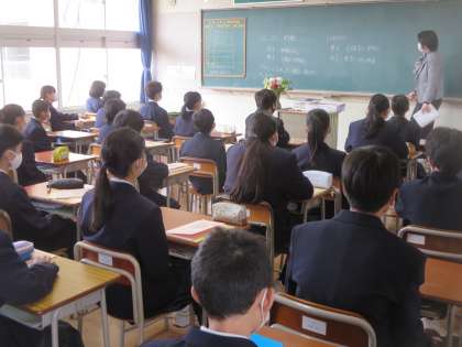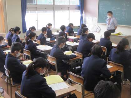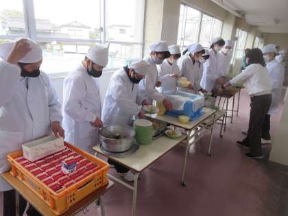 4月9日(金):第1学年 中学校生活初日 公開日 2021/04/09 更新日 2021/04/09 1学年 中学校生活1日目の午前中は、学級活動でした。提出書類の確認や学校生活のルールの確認、身体測定をしました。今日から給食も始まり、当番生徒は配膳に取り組みました。