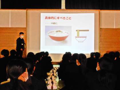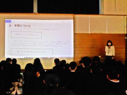 4月9日(金):第1学年 学年集会 公開日 2021/04/09 更新日 2021/04/09 1学年 午後は、学年集会をしました。 学年スタッフの紹介の後、学年主任から社会で活躍できる人になるために中学校生活で目指す目標「みそあじ100%」について話をしました。 「み」“みだしなみ”の整った人 「そ」“そうじ”のできる人 「あ」“あいさつ”のできる人 「じ」“じかん”を守れる人 「100%」これら4つをいい加減ではなく、全力でできる人
