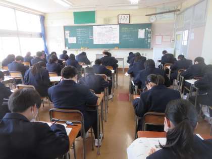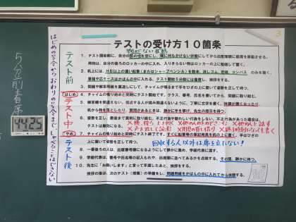 明日は、社会と英語があります。家庭でこれまでの学習を振り返り、明日の学力調査に臨みましょう。