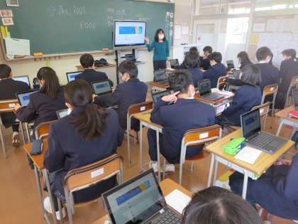 4月20日(火):第1学年 GIGA授業 公開日 2021/04/21 更新日 2021/04/21 1学年 生徒一人一人に1台ずつ配布されているタブレットPCを立ち上げて、パスワードの設定をしました。設定が終わった後は、タブレットPCに慣れるための簡単なゲームに取り組みました。