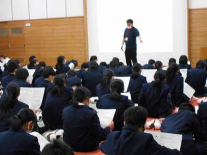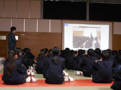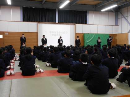 6時間目に、学年集会を行いました。まず、各クラスの学級代表から全体へ挨拶がありました。その後、入学から1か月の振り返りや生活についての話がありました。