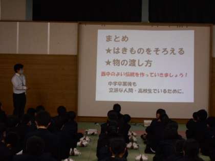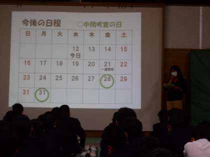 また、学年担当教員からは、“中間考査への心構え”と“目指す人物像”について話をしました。