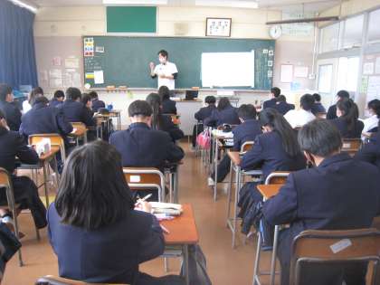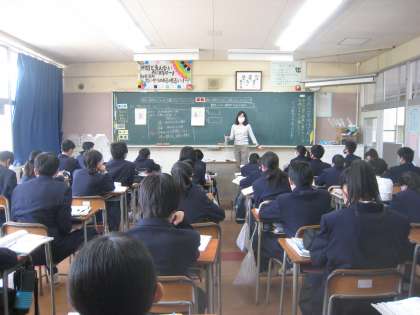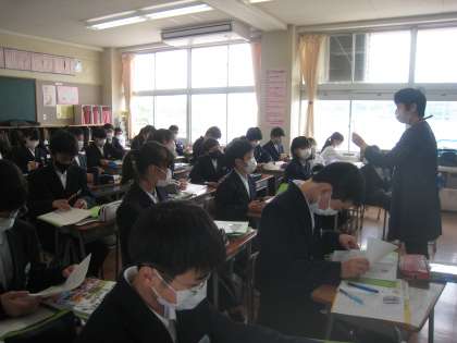 英語、社会、理科の授業です。中間テストが近付いてきました。みんな懸命に板書をノートに記入しています。