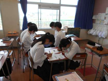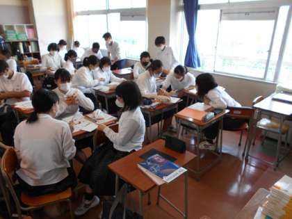 3年生の英語の授業は、ALTと活動をしました。学習指導要領に新しく加わった「現在完了進行形」をターゲットにしたクイズやゲームを行いました。ペアやグループで楽しみながら学習を進めている様子がみられました。