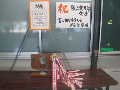 先日お伝えしたように、陸上競技部女子が市民体育大会において総合優勝したことを讃えるコーナーをつくりました。