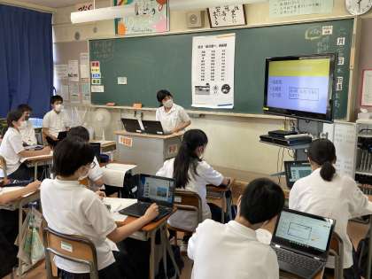 6月24日(木)第2学年 総合的な学習の時間 公開日 2021/06/24 更新日 2021/06/24 2学年 「金沢について知ろう」というテーマのもと、端末機器を使いながら一人一人の追究課題の調査結果を発表しました。映像や音楽付きの発表もあり、見応えがありました。