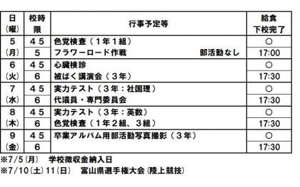 学校周辺 富山市PTA「良書推薦リーフレット」 予定献立表