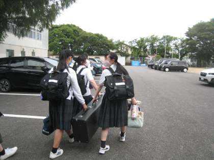 家で最終練習するために楽器を持ち帰る1年生を手伝ってくれる3年生。チームワークもバッチリです。