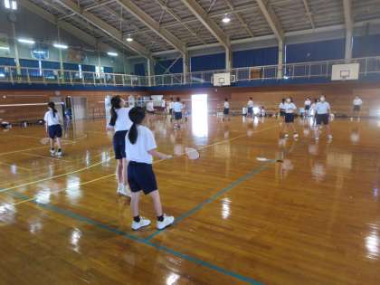 バドミントン部は5〜10分おきに、またはポイントごとに交代しながら打ち合いをして、適宜休憩を取り入れました。