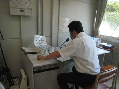 放送による終業式、校長の式辞です。校訓の意味を、節目節目に考えていくことは生き方を考えることと同じくらい大切です。生徒指導主事からの夏休み中の生活についての話もありました。