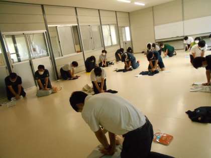 教職員を対象に、午後から心肺蘇生法講習会を実施しました。日本赤十字社救急法指導員を講師として、リモート形式で行いました。突然死等の予防のため、心肺蘇生法の手順を確認し、技能を向上させるための演習を行いました。