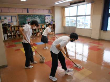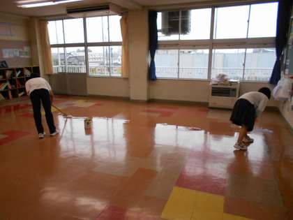 3年生のワックスがけの様子です。卒業までの約半年、教室を大事に使いましょう。環境委員の皆さん、そしてボランティアとして手伝ってくれた皆さん、ありがとうございました。