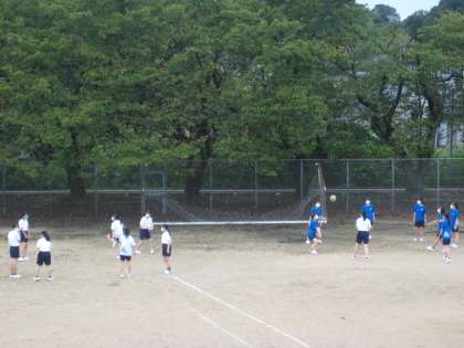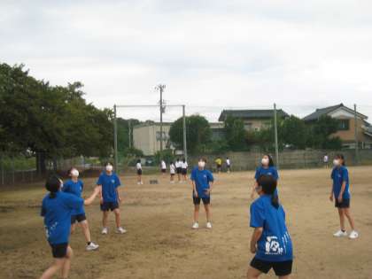 バレーボール部です。体育館が使用できない日は、グラウンドで練習します。