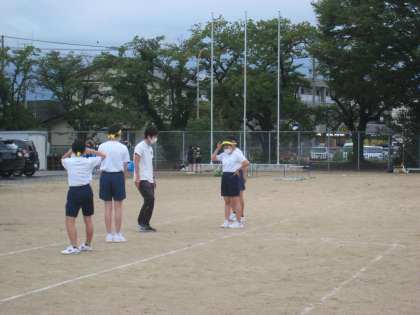 体育大会の応援練習は、グラウンドでの練習が始まっています。位置取りを確認したり、移動の時間を計ったりしながら修正を加えています。また短時間で1・2年生に教えられるよう準備しています。