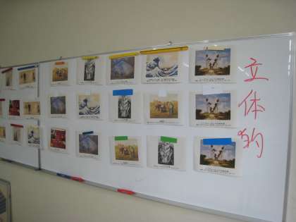 昔の名画の数々を独自の表に貼って分類してみます。「立体的」か「平面的」かで分類するだけでなく、オリジナルの視点でも分類できるでしょうか。