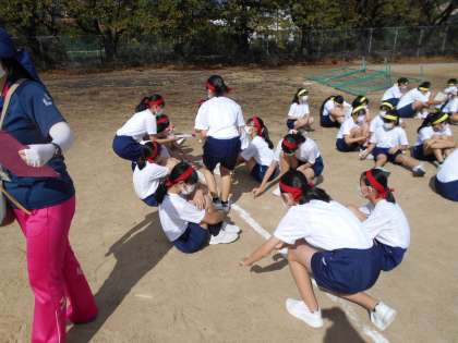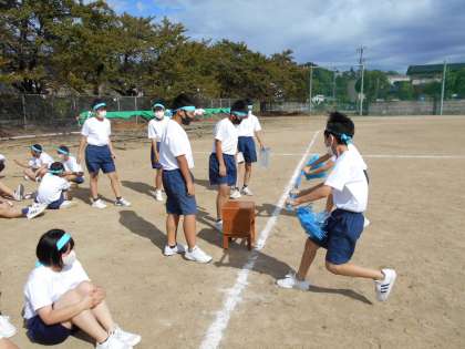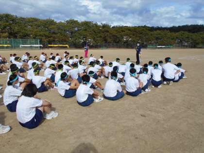担当教員から学年種目のルールの説明を受けた後、走るペアや順番を各団で話し合って決めていました。