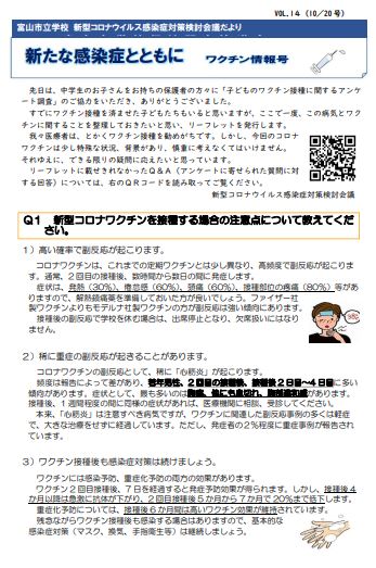 10月21日(木)富山市立学校 新型コロナウイルス感染症対策検討会議だよりVol.14