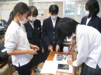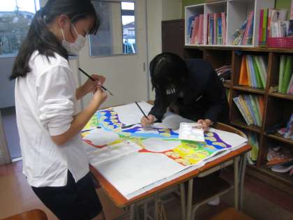 1年3組では、合唱コンクールの学級目標を作成していました。丁寧に取り組んでいました。