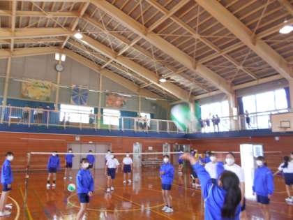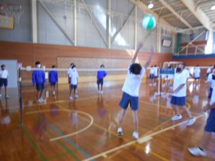 5、6時間目は生徒会主催のスポーツ大会でした。前半はビーチバレーボールに取り組みました。ふわりと浮き上がるボールの動きに惑わされながら、楽しく活動していました。スムーズに進行できるように、学年生徒会が全体へ指示を出していました。