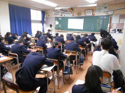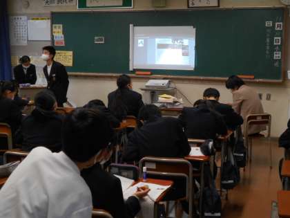 6時間目に八尾校外学習で学んできたことの発表会を行いました。プロジェクターで学習内容をまとめたワークシートを示しながら、課題設定の理由や活動して分かったことについて、順に発表しました。