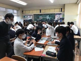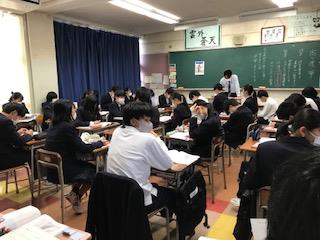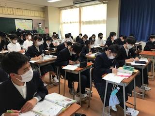 3年生の5時間目の授業です。 写真上=1組(道徳) 写真中=2組(美術) 写真下=3組(理科)