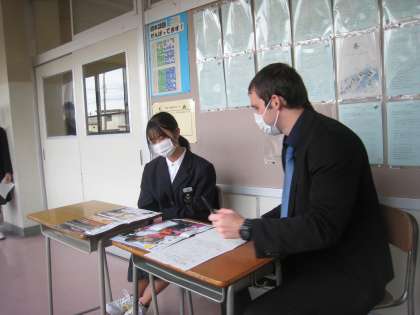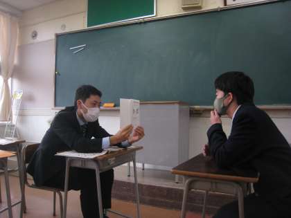 1学期よりも難しい課題でしたが、普段できないことを楽しんでいる様子の生徒も多かったです。リチャード先生は「一人一人の堂々と英語を話す様子を見ることができて、本当によかった。目をしっかりと合わせて話してくれたこともよかった!」とほめてくれました。
