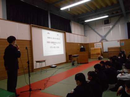 産婦人科医の田中先生を講師にお招きし、2年生を対象に「一緒に考えよう〜いのち(生)と性」と題してお話をしていただきました。思春期の心と体の変化や望まない妊娠、SNSによる性被害等について、生徒たちは真剣な表情で聞いていました。