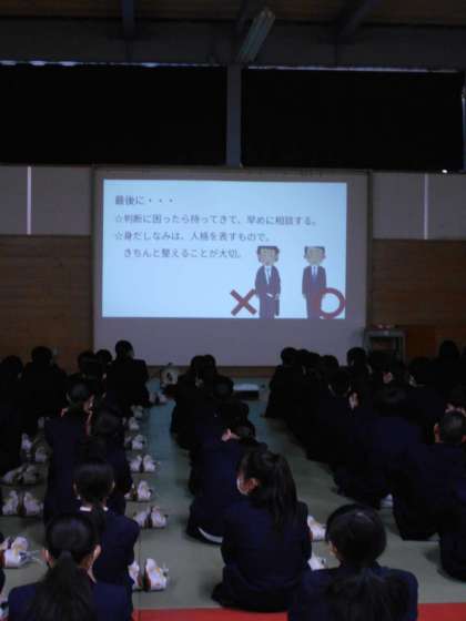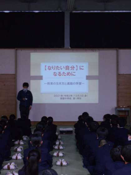 学年主任からは、「なりたい自分になるために」というテーマで生き方について話がありました。