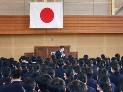 終業式では、校長から校訓「知性」「理想」「誠実」の意味をもとに、本校の生徒が達成していること、今後の課題と考えられることを伝えました。また、吉田松陰の「学ぶことは自分を磨くことだ」という言葉を紹介して、学びの大切さについても話をしました。
