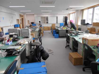 1月22日(土)早朝より夕刻にかけて、移送(引越)が行われました。何百ものダンボール箱の移動はもちろん、電話やコンピュータの設置、ネットワークの接続、大変な重さの管理庫の移動、警備システムの再設定等、様々な職種の方によるスムーズな作業のおかげで、出勤した職員も自分の持ち場で整理整頓をすることができました。