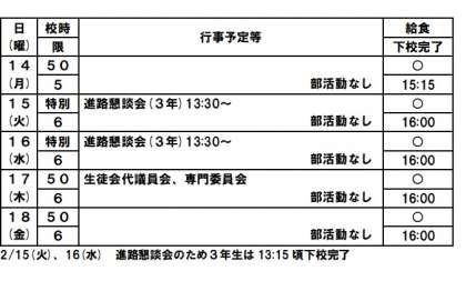 ・道路上の残雪や降雪の予報等により、自転車通学の停止も継続します。自転車通学再開の際にはお知らせします。