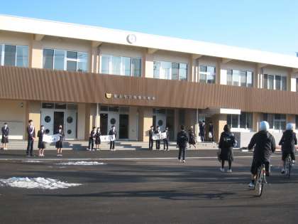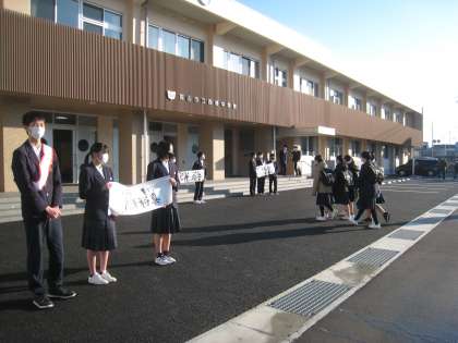 会長、副会長候補が生徒玄関前で、登校する生徒へ投票を呼び掛けました。西部中のこれからを託せる頼もしい人たちが何人も立候補してくれてわくわくします。