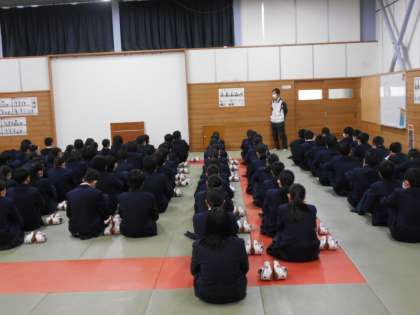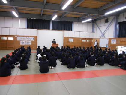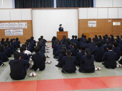 明日から始まる県立高等学校一般選抜に向けて、学年集会を行いました。校長、学年担当者から激励の言葉を送りました。今までの勉強の成果を発揮してきてください。健闘を祈っています。